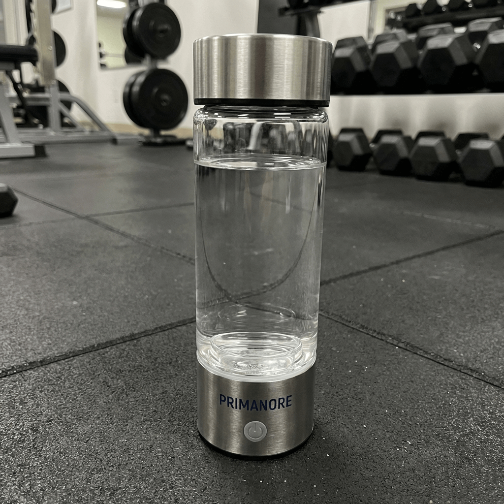 Your Primanore package includes the hydrogen water bottle, a USB charging cable, and a quick start guide to help you begin using it right away.