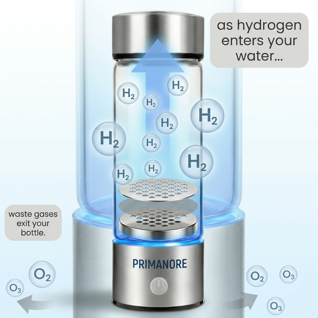 It simply enriches your water with hydrogen while excess oxygen is safely released.